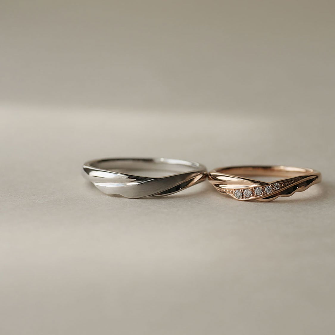 ペアで一対の翼となるような指輪を