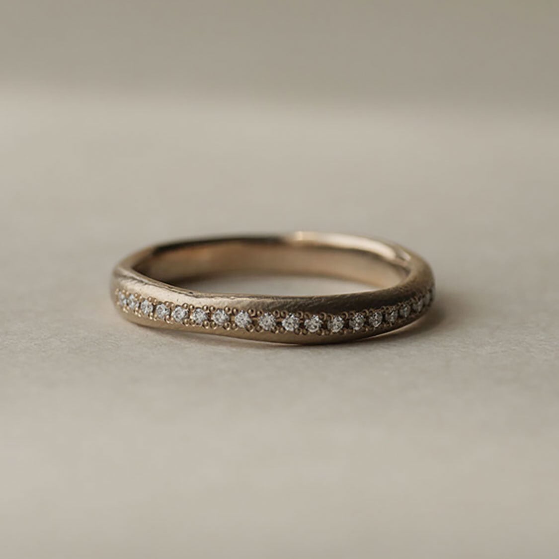 ※指輪の約半周にダイヤモンドをお留めしたハーフエタニティリングです(石の個数が決まっているため、見え方はサイズによって多少異なります)。