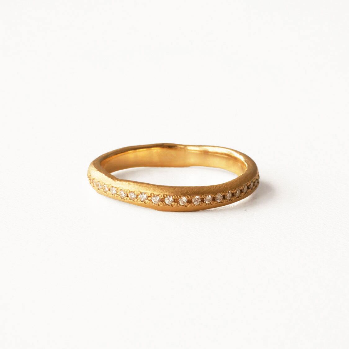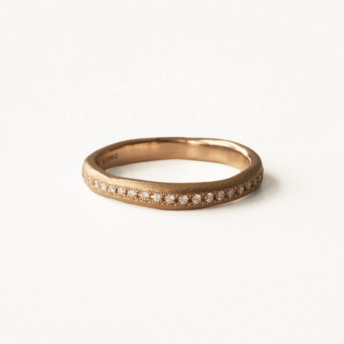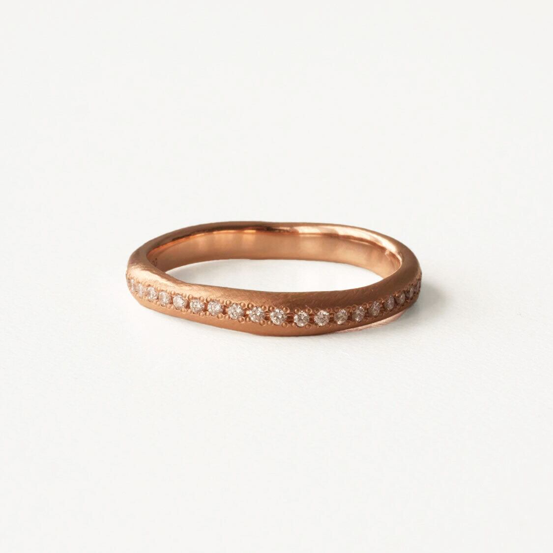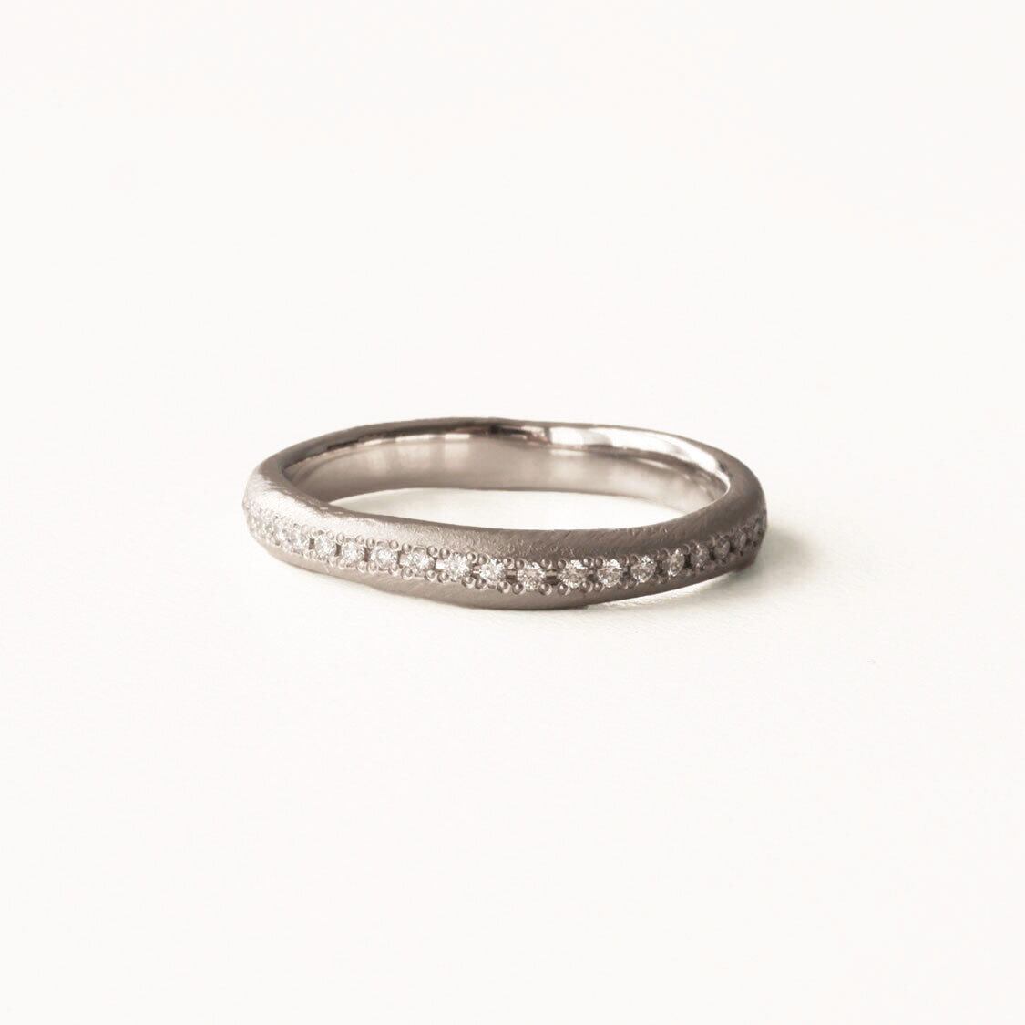 ※指輪の約半周にダイヤモンドをお留めしたハーフエタニティリングです(石の個数が決まっているため、見え方はサイズによって多少異なります)。