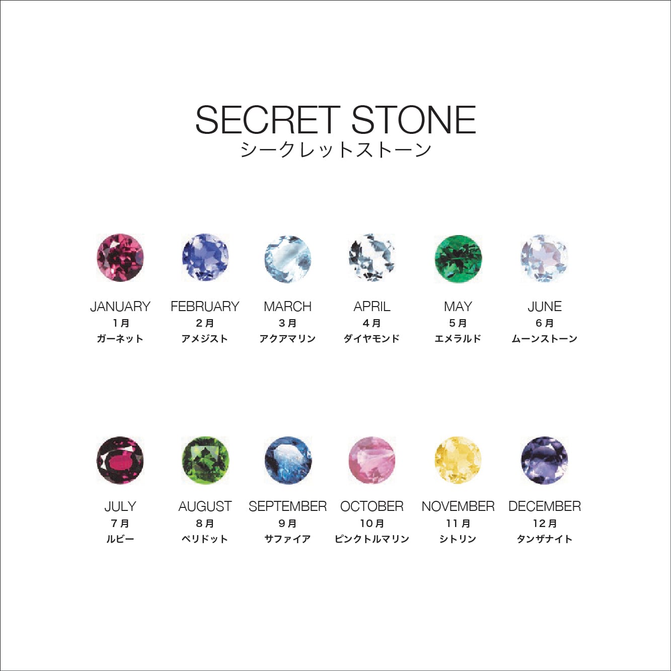 ※全てのシークレットストーンは天然石であること、または一部の石にはエンハンスメント処理を施しているため、色には個体差がございます。