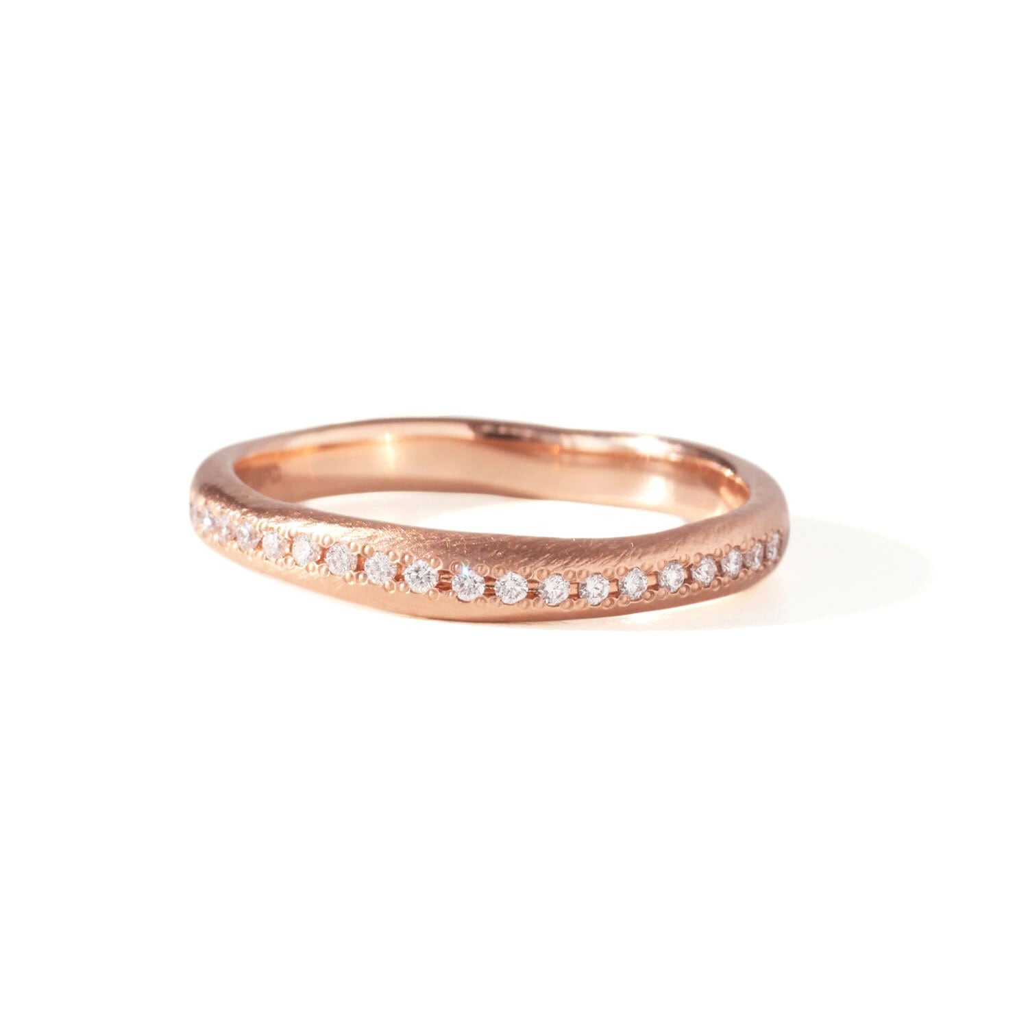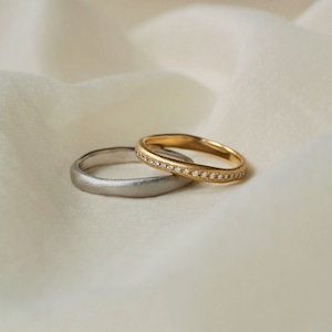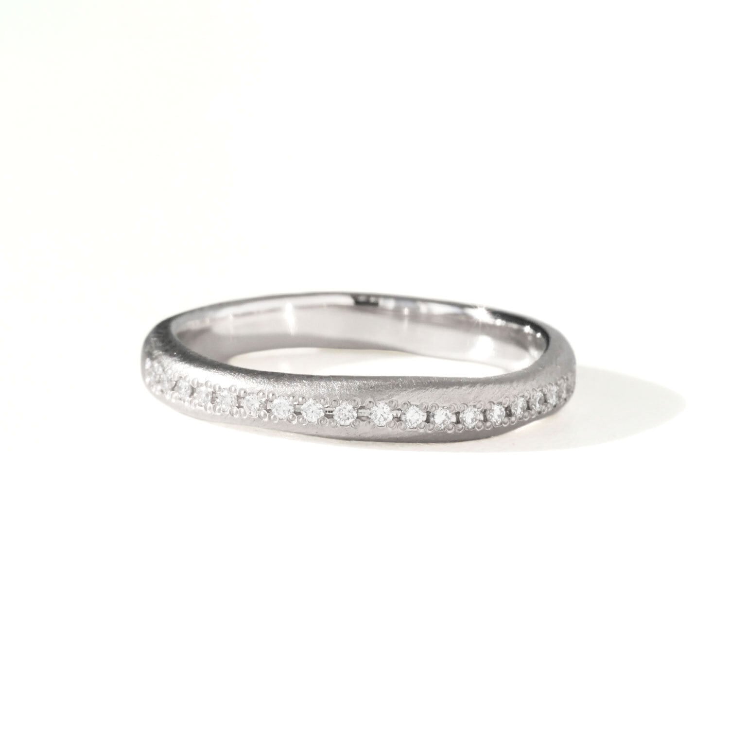※指輪の約半周にダイヤモンドをお留めしたハーフエタニティリングです(石の個数が決まっているため、見え方はサイズによって多少異なります)。