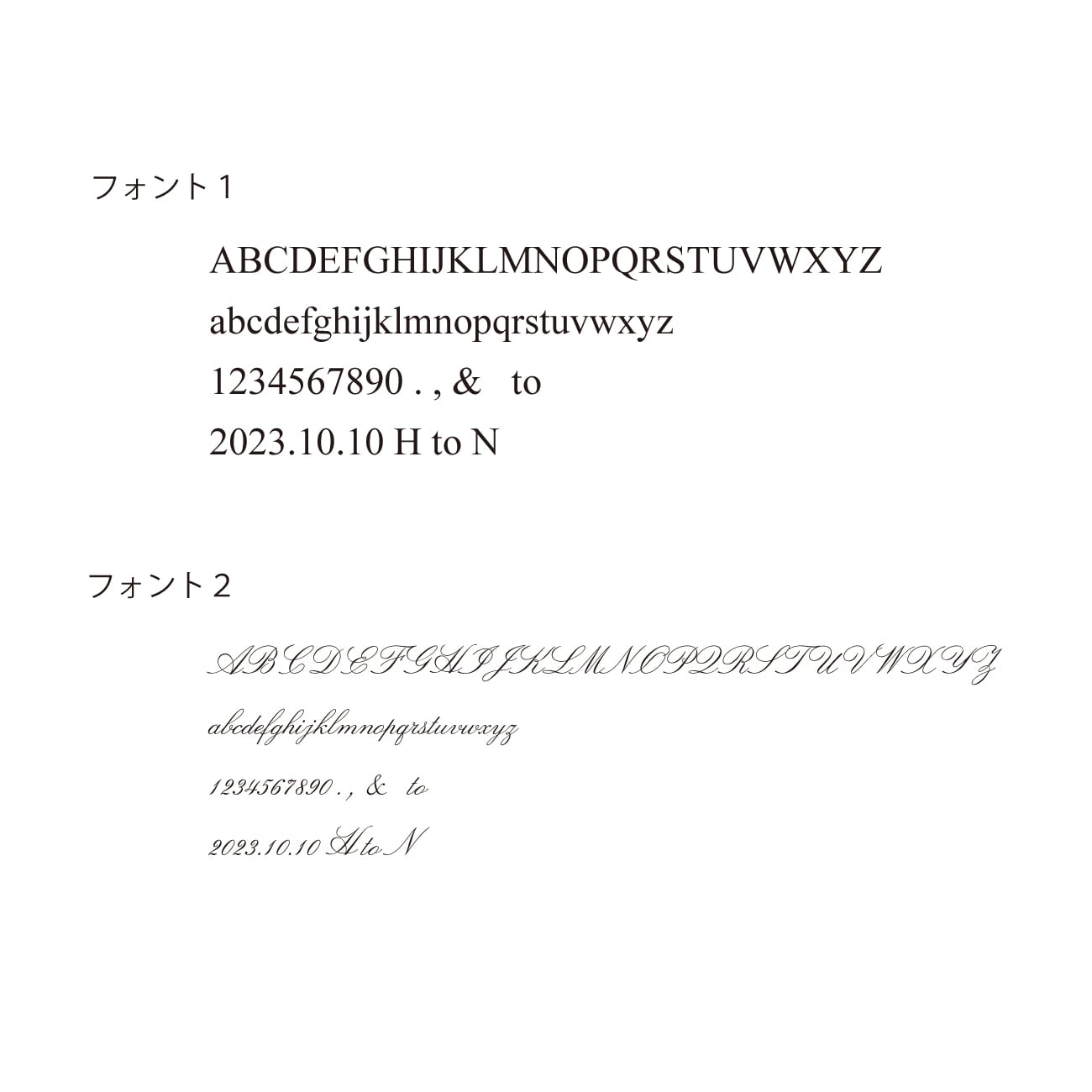 書体の種類(画像のフォント1,2)と